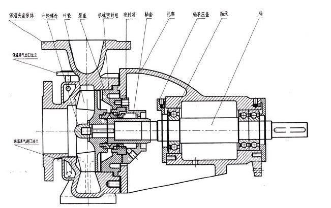 HCP型三代熔融乙底酸泵是單級(jí)單吸懸壁式離心泵。適用于化肥廠輸送融熔乙底酸液用,也可用于輸送不含懸浮顆粒物的其他腐蝕性液體。介質(zhì)的溫度允許-20~380攝氏度,泵是水平抽向吸入,徑向端吐出,泵前側(cè)有保溫夾套,雙重保夾可允0.59MPa,170攝氏度的蒸汽保溫。用戶可根據(jù)被輸送介質(zhì)的腐蝕性能程度選用不同材料,型號(hào)和不同流量揚(yáng)程可調(diào)控。