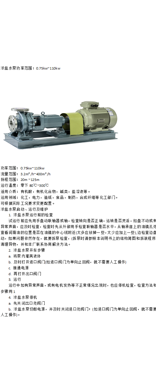 濃鹽水泵功率范圍:0.75kw~110kw
