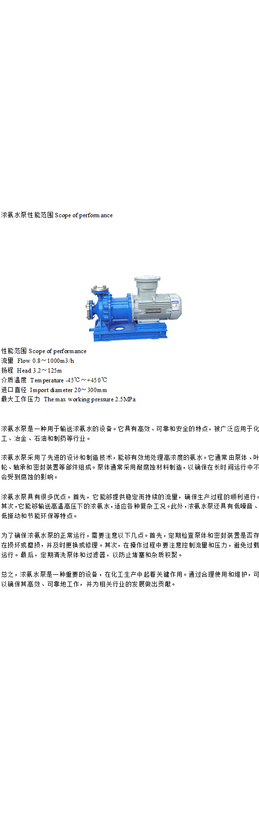 濃氨水泵性能范圍 http://m.125a.net/html/jishuziliao/202401268620.html 濃氨水泵性能范圍Scope of performance