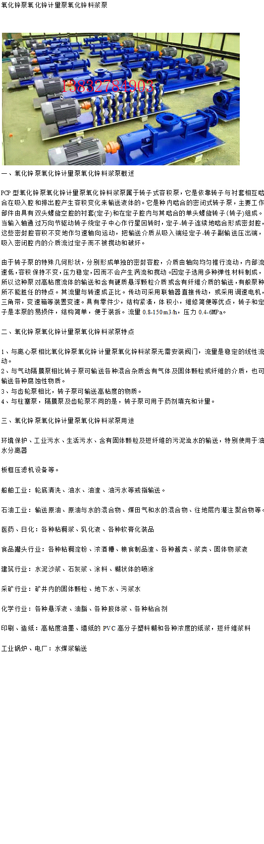 氧化鋅泵氧化鋅計量泵氧化鋅料漿泵