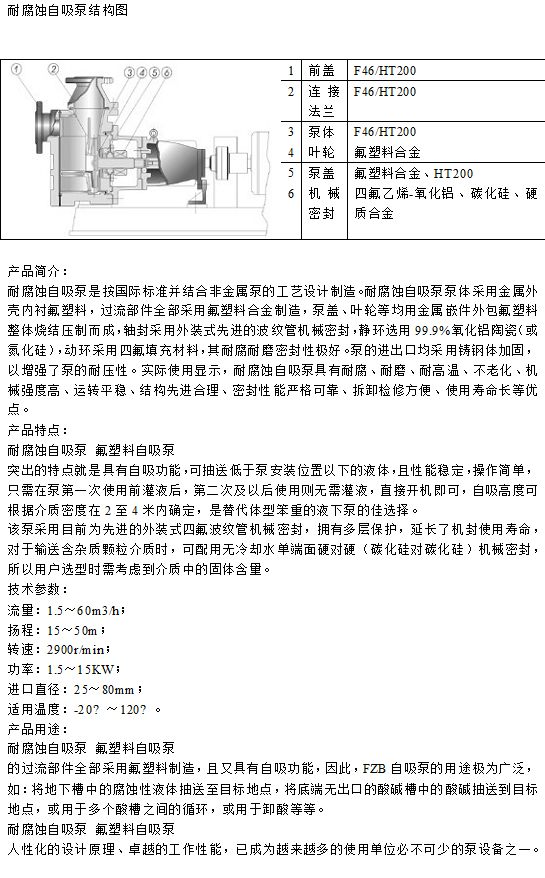 氫氟酸泵氫氟酸輸送泵主要參數(shù):